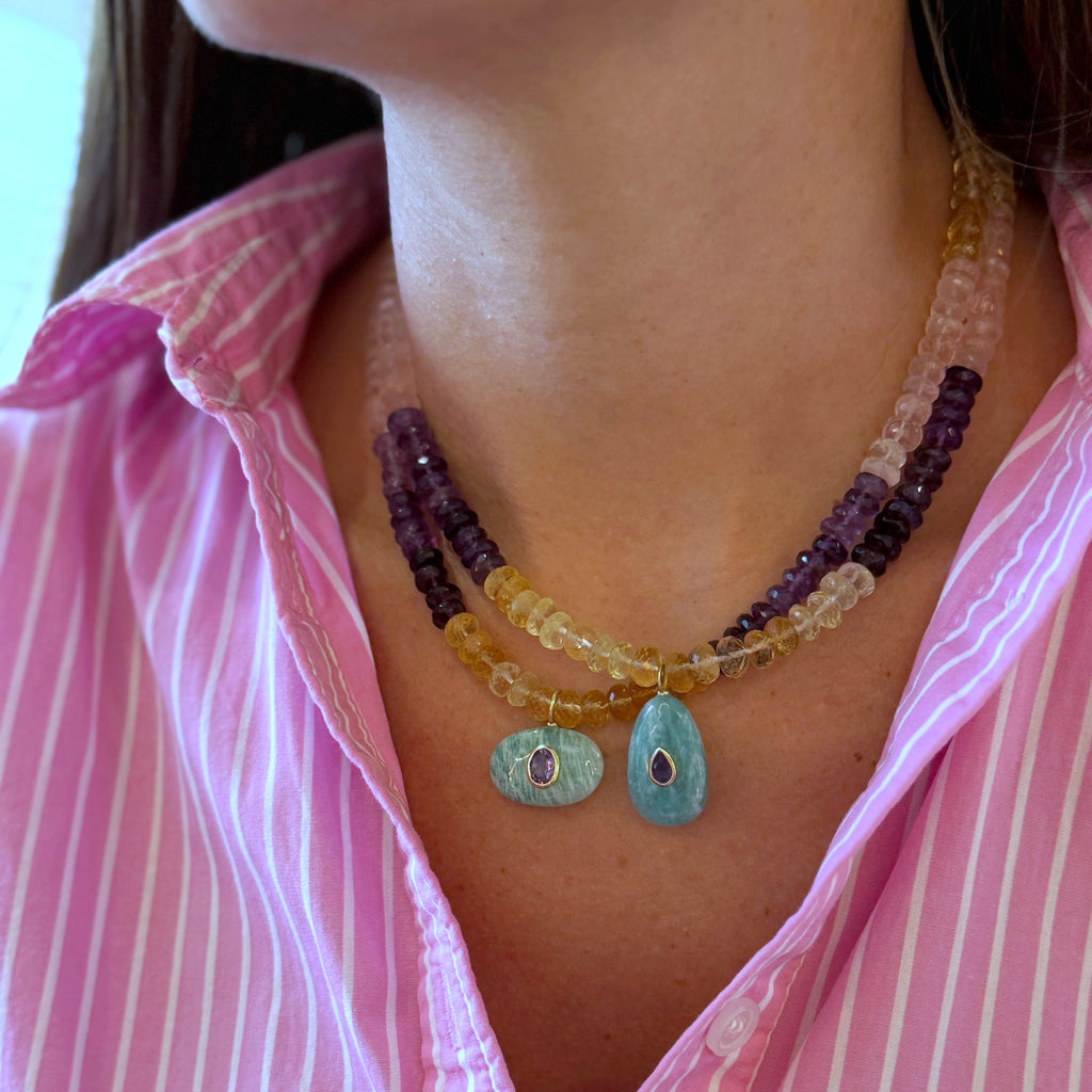 Faceted Amethyst & Jade Pendant Necklace