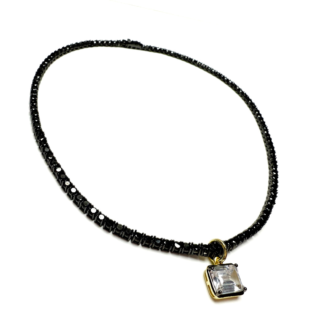Black Tennis Necklace with Charm