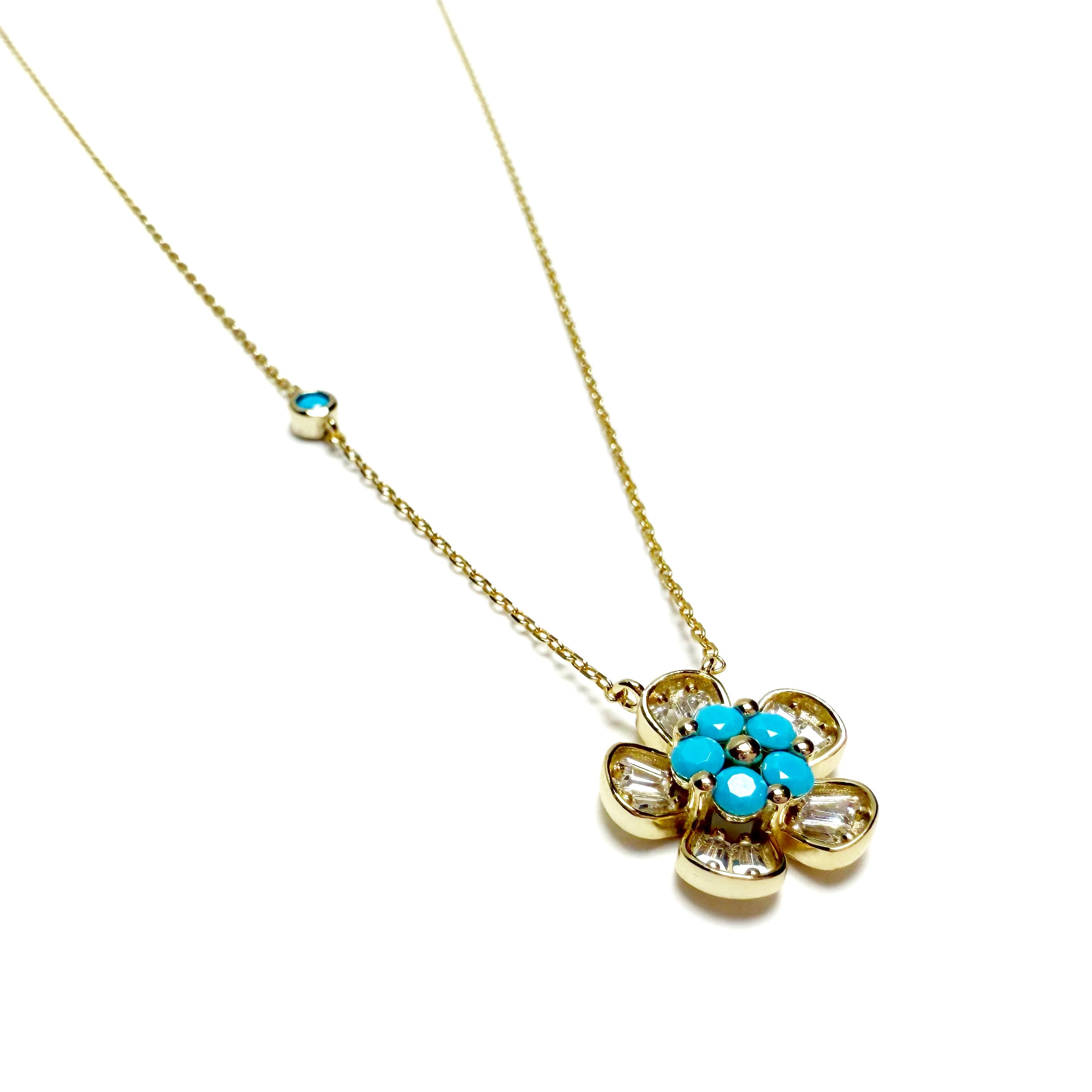 Flower and Bezel Turquoise Necklace
