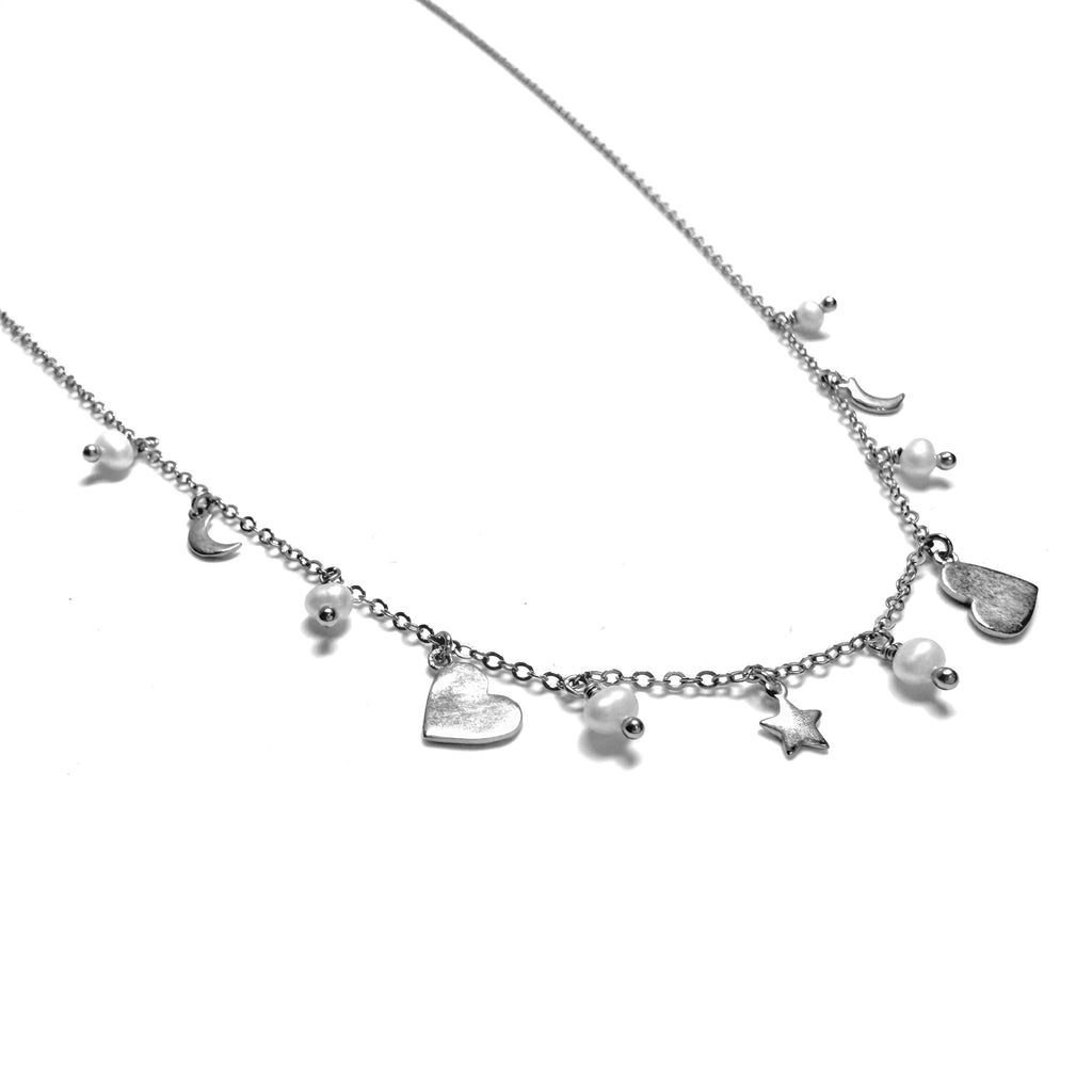 Flower Pave Outline Mother of Pearl Girls Necklace