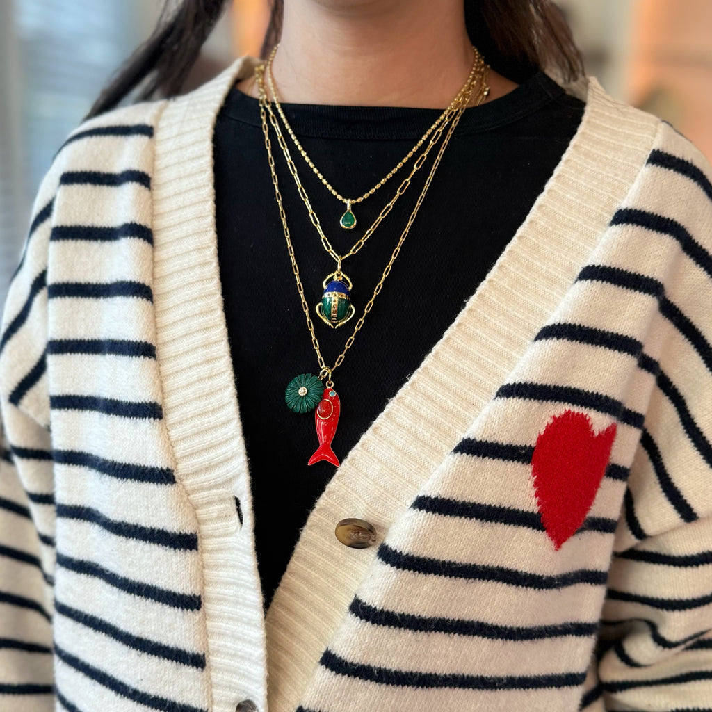 Our Sterling Silver jewelry is crafted with 925 Silver and plated with 14K Gold. To preserve its quality it’s important to protect it from moisture and harsh chemicals. Store it in a dry place and remember to remove it before swimming and exercise.