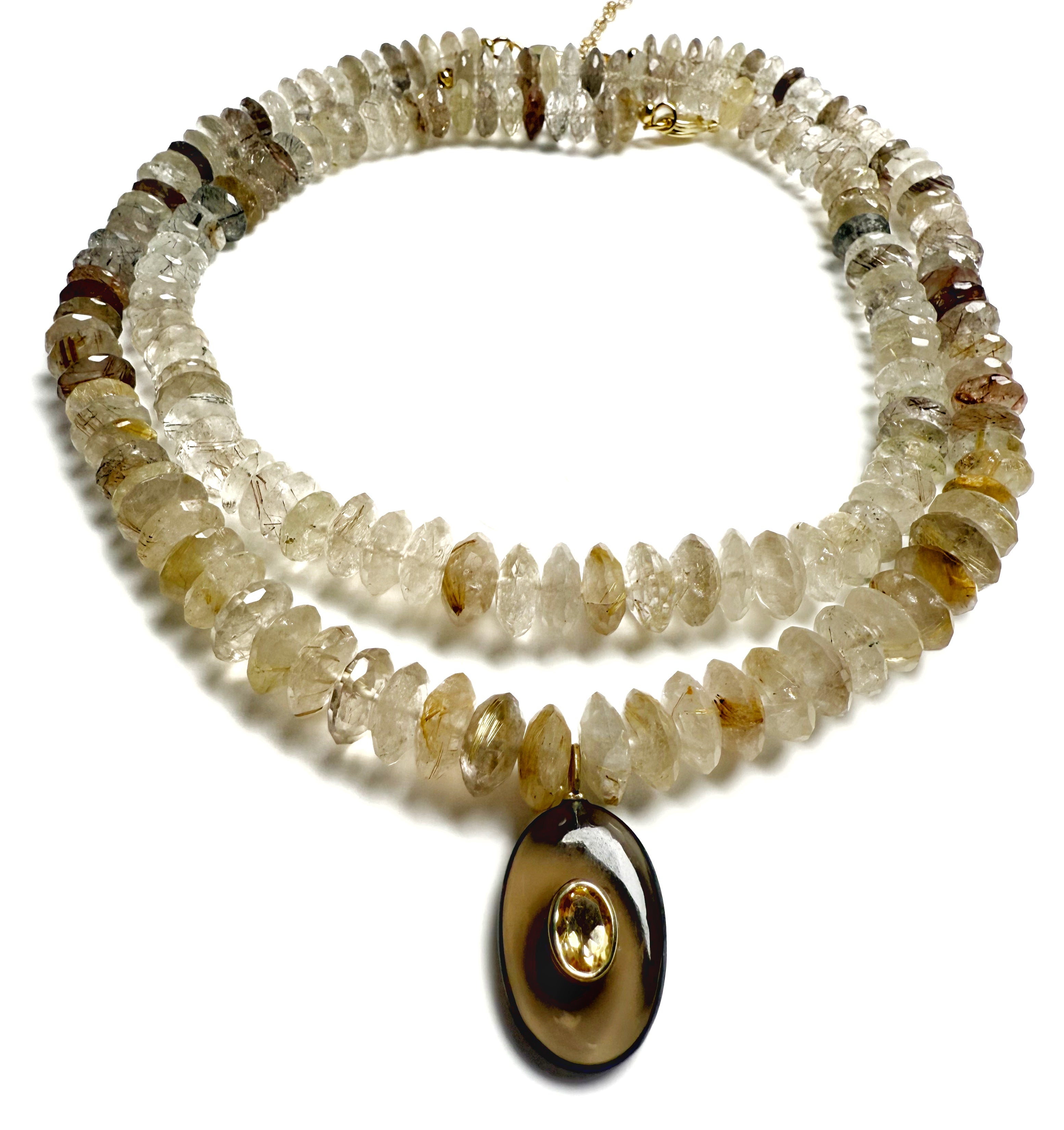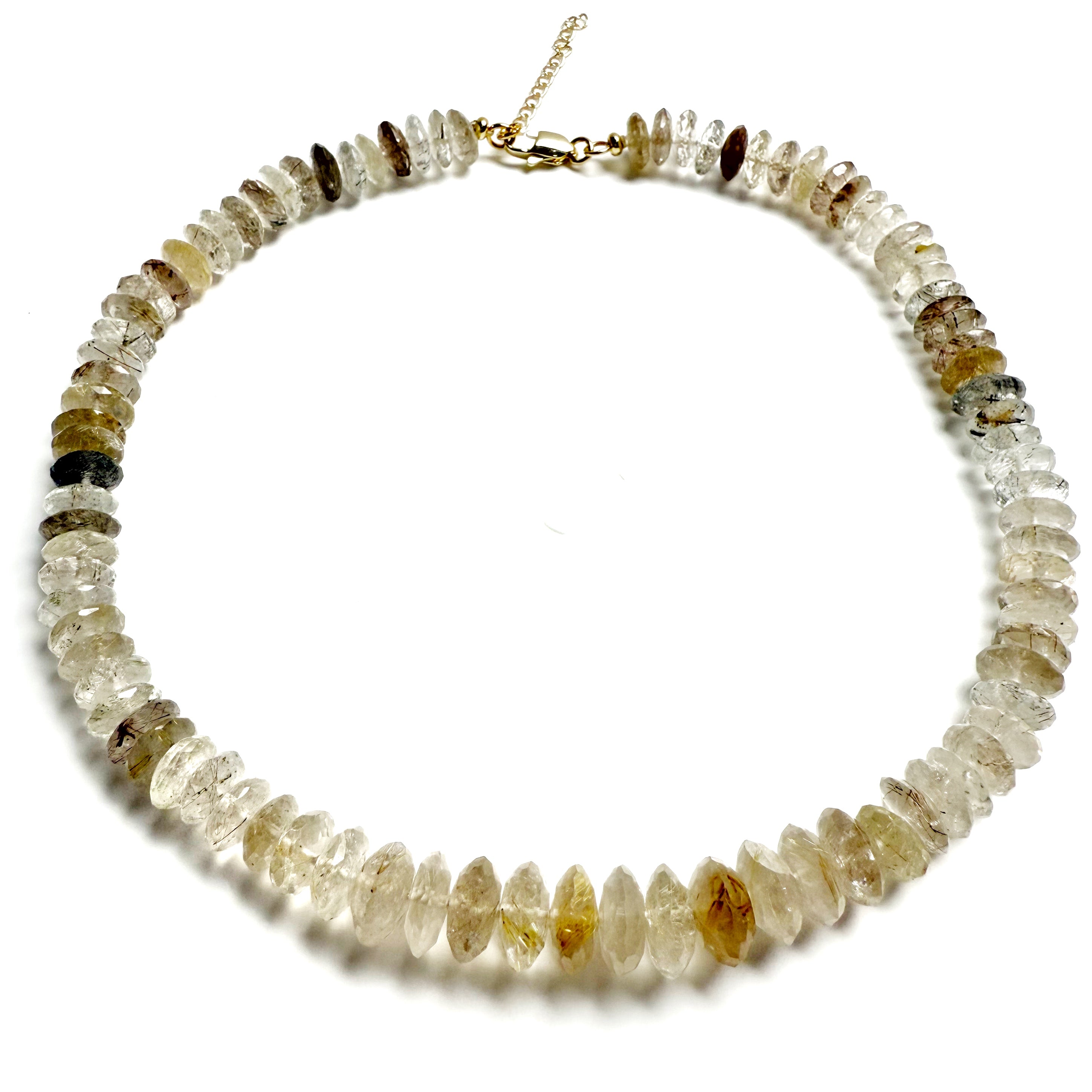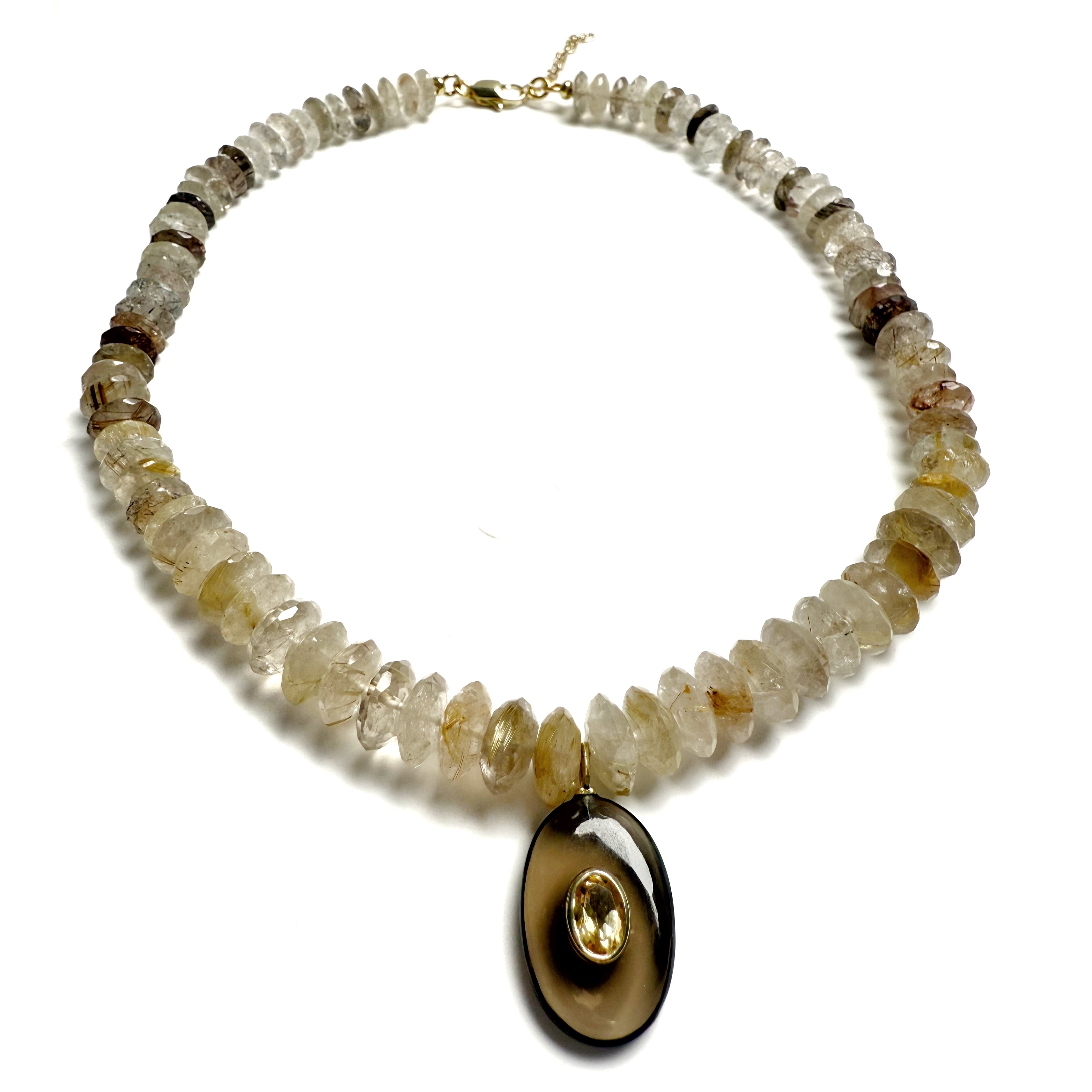 Faceted Rutilated Quartz and Smokey Quartz Necklace