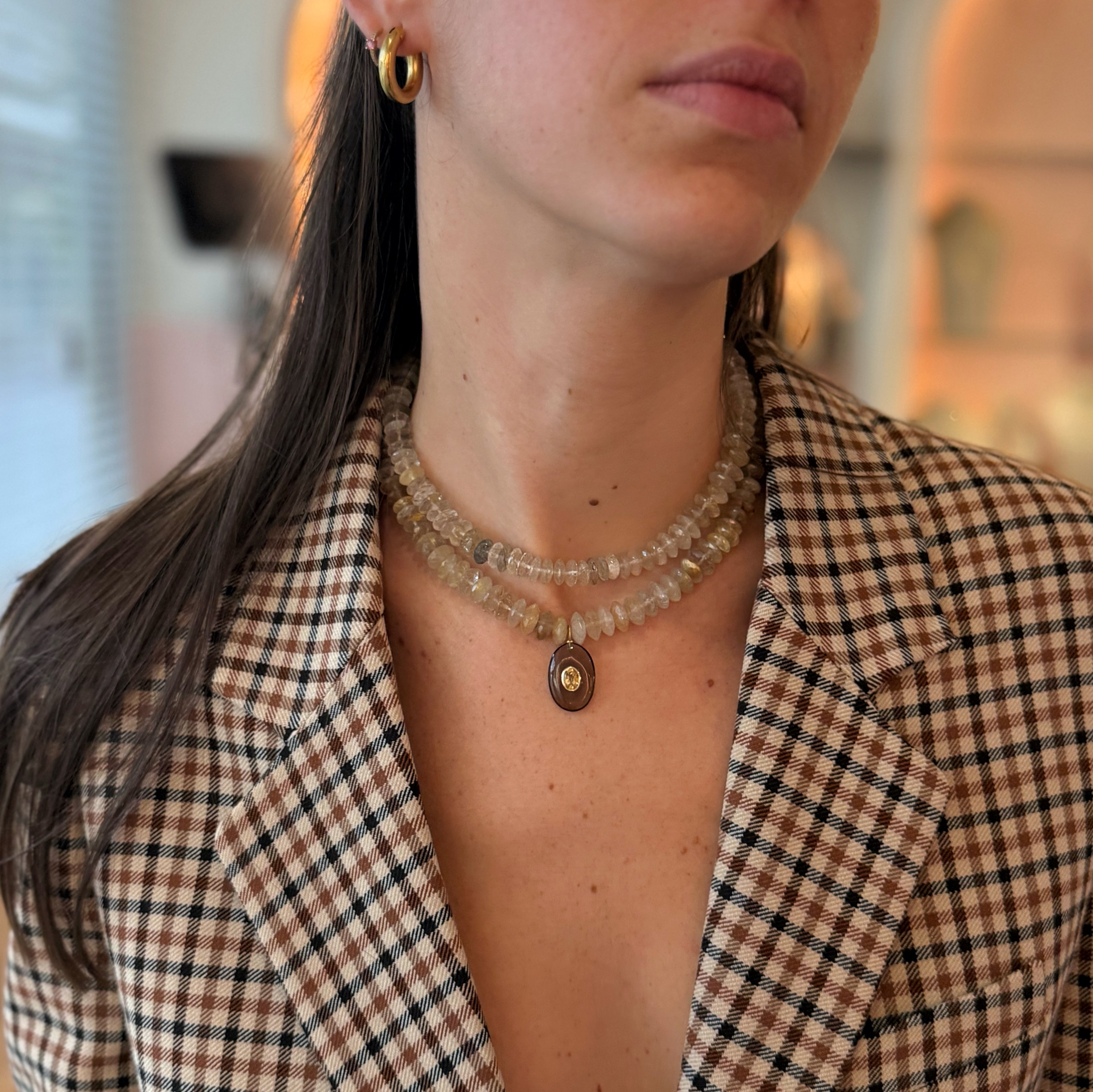 Faceted Rutilated Quartz and Smokey Quartz Necklace