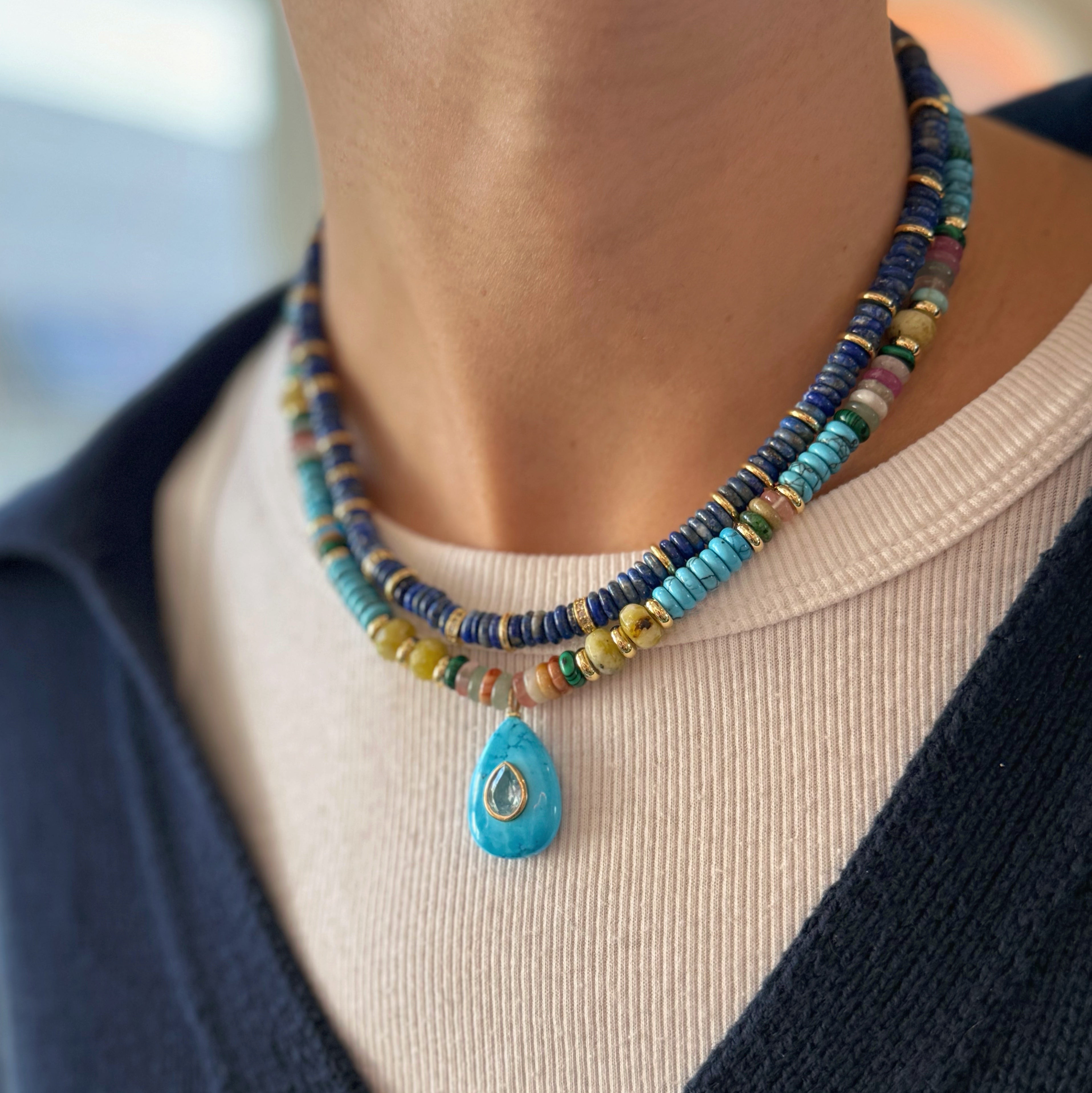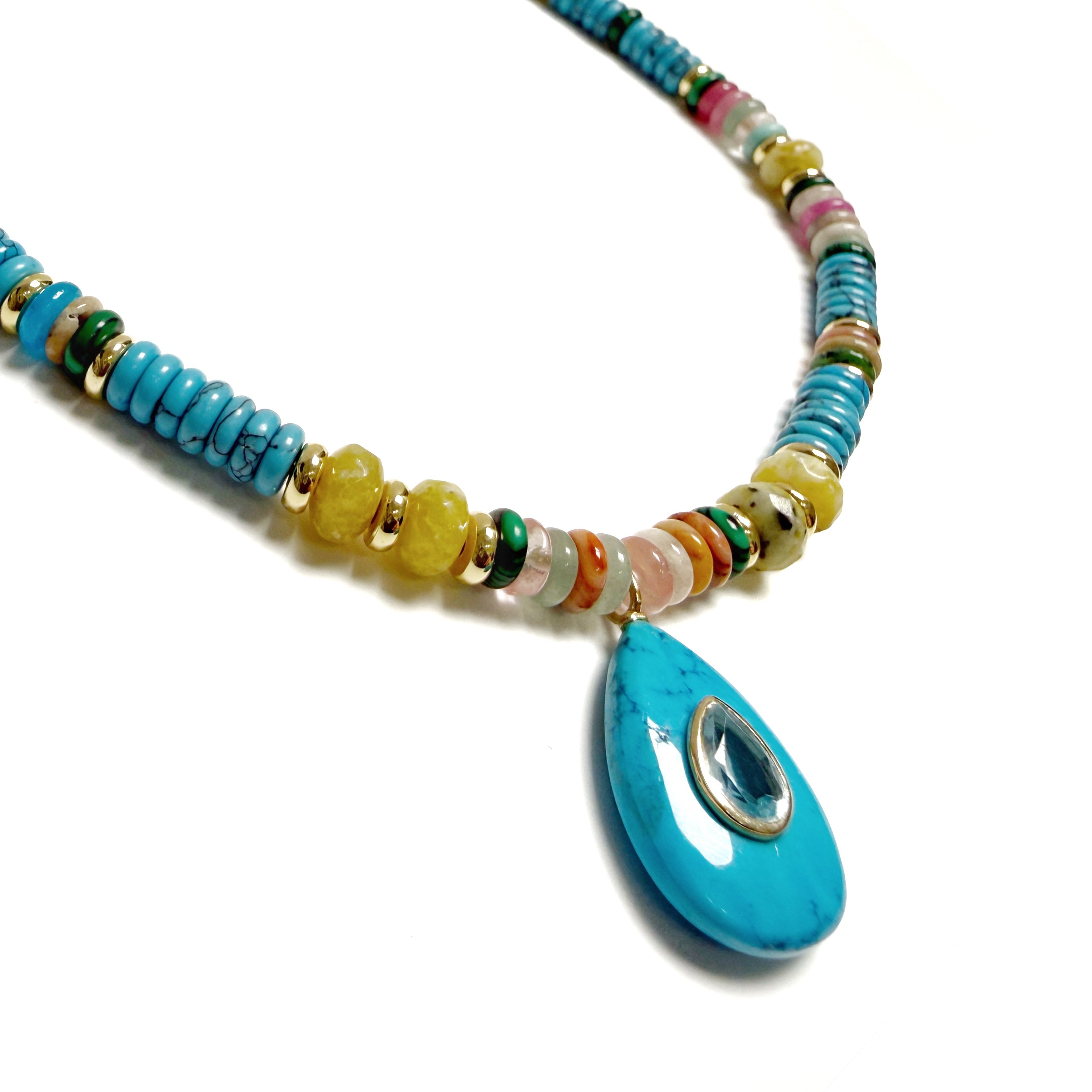 Multicolor Turquoise Drop Puka Necklace