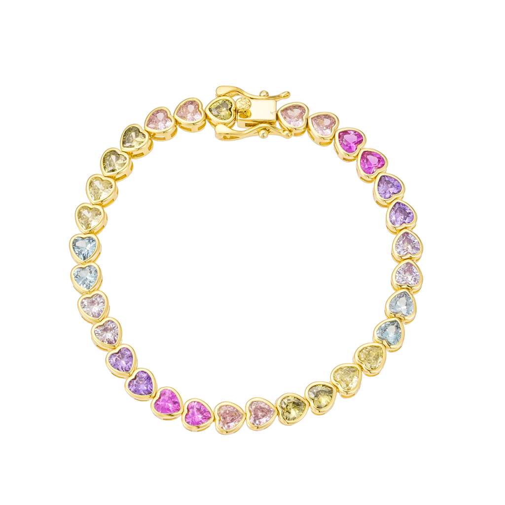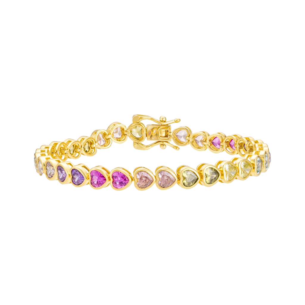 Rainbow Heart Tennis Bracelet