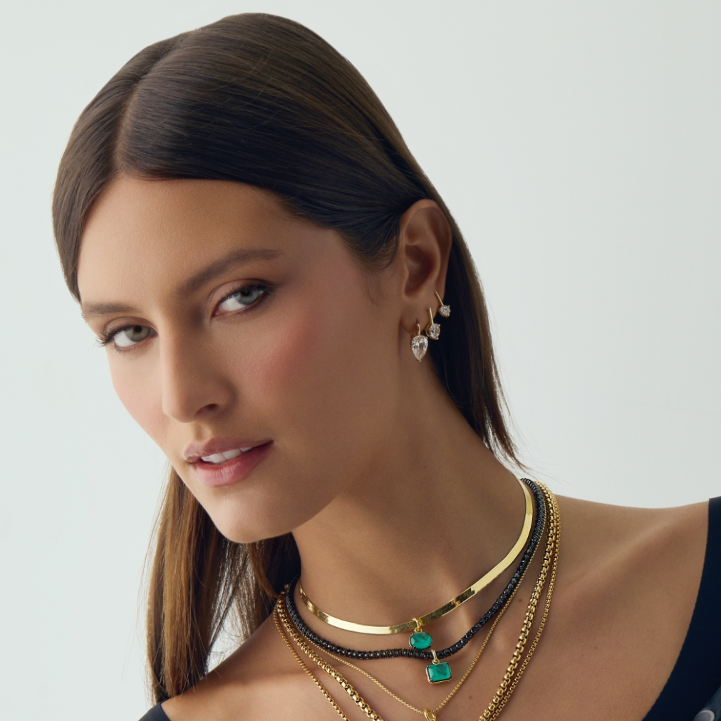 Our Sterling Silver jewelry is crafted with 925 Silver and plated with 14K Gold. To preserve its quality it’s important to protect it from moisture and harsh chemicals. Store it in a dry place and remember to remove it before swimming and exercise.